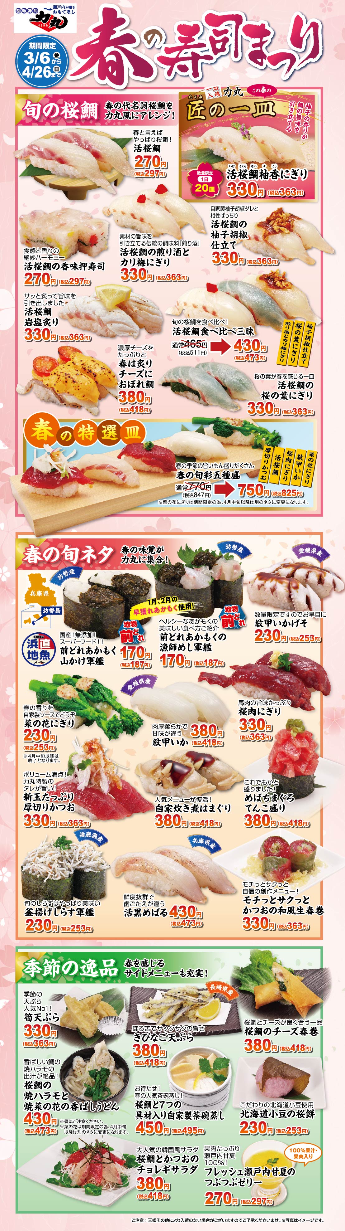 - ※鮮魚ネタは日によって異なります。